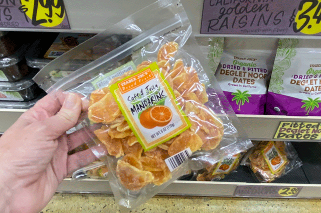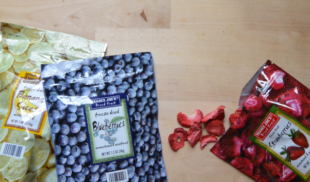 If you have a kid who prefers fruit crunchy, you likely already know that Trader Joe’s offers an amazing assortment of freeze-dried options—strawberries, blueberries, bananas, Fuji apples, and raspberries are usually in stock. While the water may be gone, all that fruity nutrition remains. And they’re always in season!