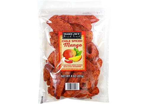 Snack on something sweet and spicy with Trader Joe's Child Spiced Dried Mango. The tropic fruit is carefully dried so that they don’t lose too much moisture and then seasoned with a blend of paprika, cayenne, sugar, and salt.