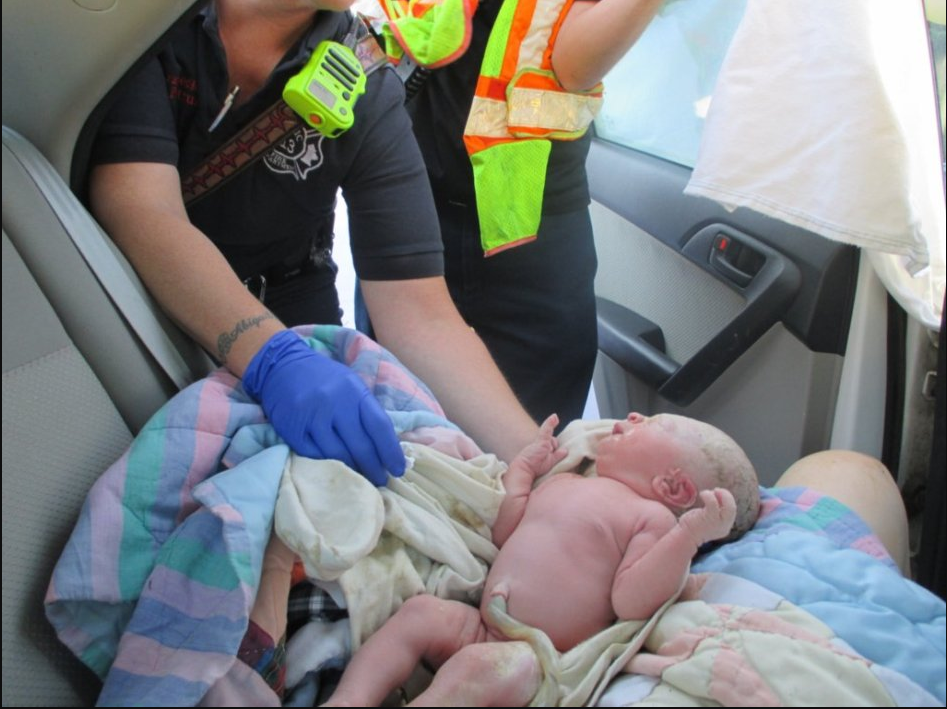 Luckily a kind Samaritan pulled over as I word vomited, “Hi can you call 911 my wife just delivered our baby on the side of the road.” He was surprised but said, “Yes, of course!”