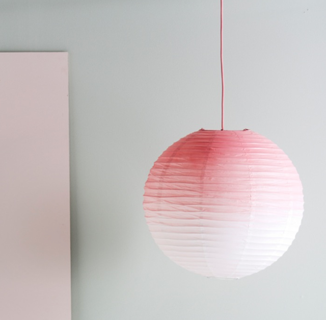 Good to Know: The trick to achieving the ombre look is to saturate the top of the lampshade with spray paint and then let the paint disperse down the shade, where it will fade to white.