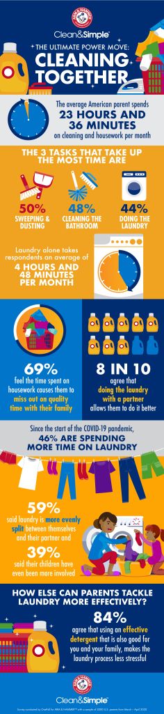 “Household dynamics and the way in which parents approach cleaning is constantly evolving, especially given the current climate,” said Laurie Kirschner, Director of Marketing for ARM & HAMMER™ Clean & Simple™.