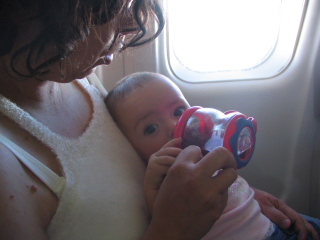 The toddler on the other hand? Well, it’s just a tough age. Too old for cuddling and napping as we zoom through the sky, too young to hold her focus for any length of time. She’s in constant motion. If this plane does not speed up and get to our destination ahead of schedule, I may collapse in an exhausted heap.