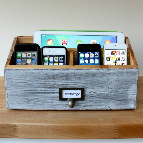 Give an old letter sorter new life with an electric jolt. This rustic charging station will keep cords corralled and electronic devices ready to go. It's stylish enough that you won't mind seeing it on your counter and big enough that it'll hold all your devices. Go to Driven by Decor to find out how you can create your own custom charging station.