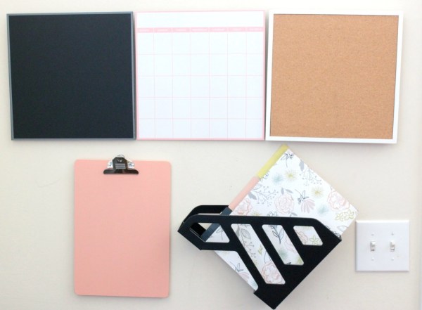 Put together this family command center in less time than it takes to deliver a pizza to your front door. This color-coordinated scheduler has all of the essentials—a place to put loose papers, a handy message board, a calendar—without the sweat or expense some others require.