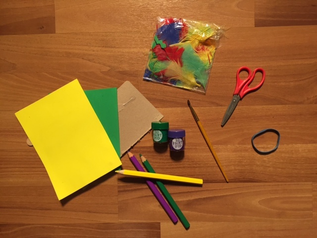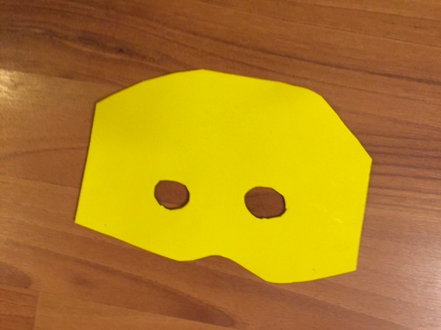 2. A sheet of yellow foam paper for the mask base. We were out of yellow paint, so this was the solution! Before we stumbled on this at the bottom of the craft box, we had sliced a rectangle of cardboard off the box that held the garbage bags.