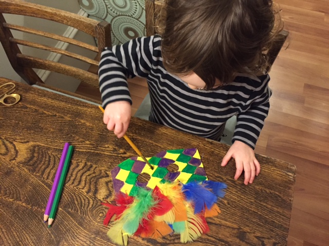 3. Paint, markers or glitter glue. Traditional Mardi Gras colors are yellow, green and purple, but we promise, any colorful outfit will be welcome on Mardi Gras.