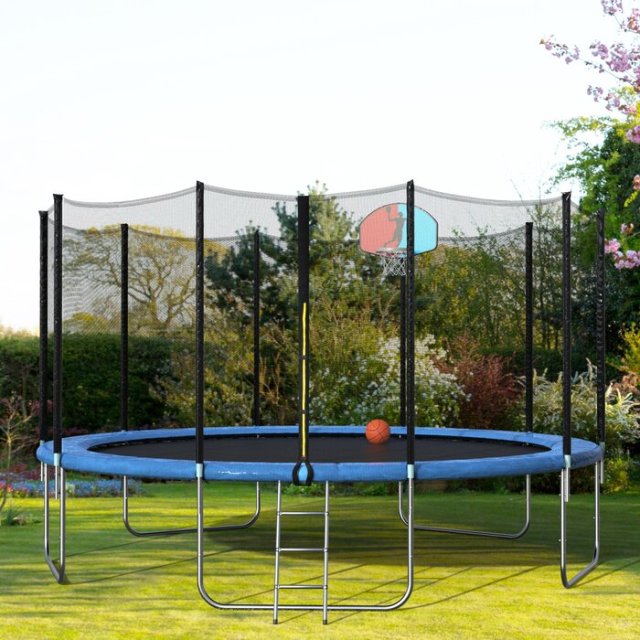 If you are looking to practice your jump shot, this is the trampoline for you. This 15-foot design comes with a basketball hoop and ball, guaranteeing hours of fun in your backyard. An included spring pull tool makes setup even easier (you'll thank us later).