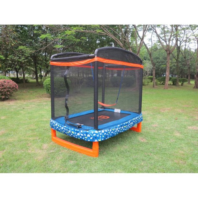 This 7-foot trampoline will be the talk of the neighborhood when you set it up in your backyard. Easy to assemble, it's also easy for little ones to climb in and out of with the special climbing ladder and slide. It's low height protects kids from unexpected falls. You can even set it up in your living room or garage for rainy days.