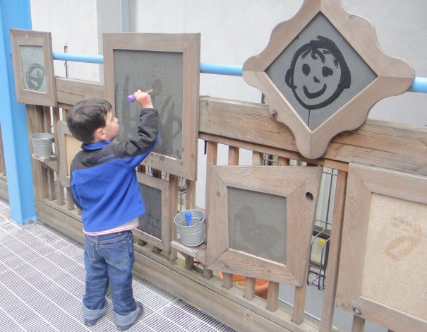 Give the kids a constant place to be artistic outside, rain or shine. Craft a mounted outdoor easel like this one from Made with Happy and let the creative juices flow!