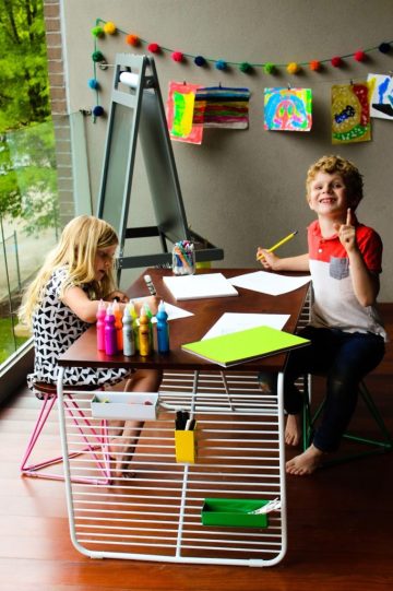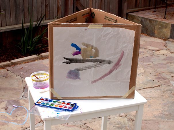 This awesome DIY easel from Pink Stripey Socks is super easy and inexpensive to make with very few materials. Plus, it can accommodate up to three artists at once! Grab a cardboard box and check out the blog to learn to make your own.