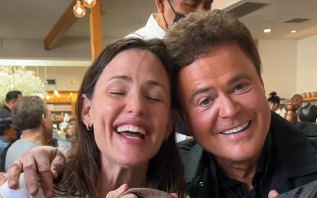 Osmond’s video message wasn’t the only thing he’d personalized for the star. He came bearing a cake, which read “13 Going on 50! Love Donny!” written in icing—a nod to Garner’s famed movie, 13 Going on 30, where her character is also obsessed with Osmond. The duo then sang Donny & Marie’s 1975 hit “Make the World Go Away” at the table, and it was as though they were the only two people left in the world.