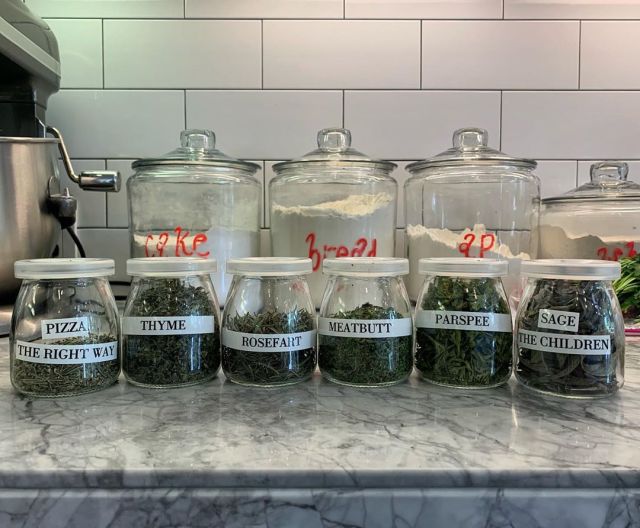 Garner shared an Instagram post featuring a picture of her kitchen counter with labeled spice jars lined up. At first glance all appears normal, but when you take a closer look at the labels you’ll notice something a little unusual. Instead of names like “rosemary” and “parsley” the jars feature monikers like “rosefart” and “parspee.”