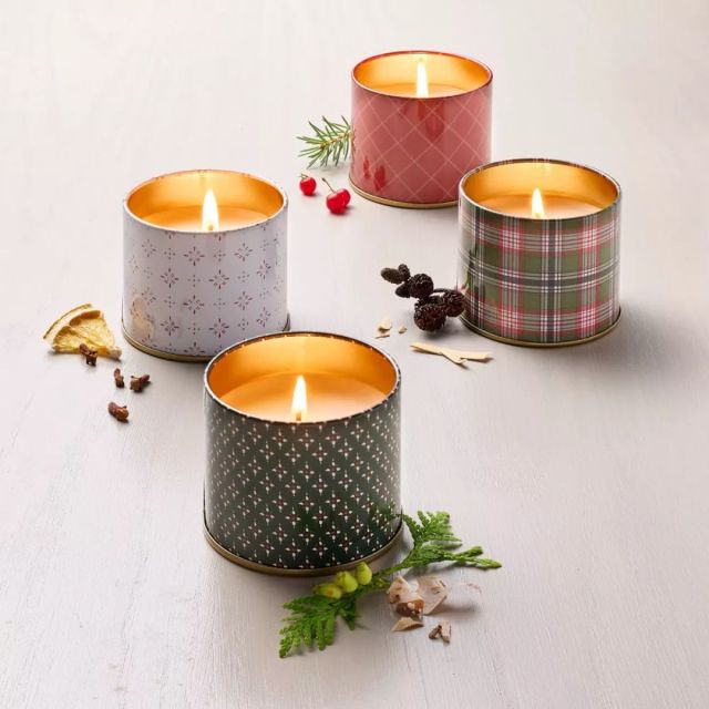 What would the holidays be without scented candles? Fireside Spruce, Mulled Spice, Cypress & Santal, and Balsam & Berry fragrances are all included in this four-piece set of mini candles in festive tins.