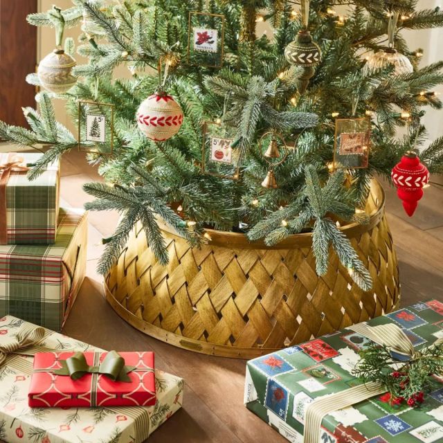 Ready to retire the Christmas tree skirt? The lattice detail of this woven tree collar is ultra-charming and comes in three different colors: Natural (pictured), Brown, and Black.