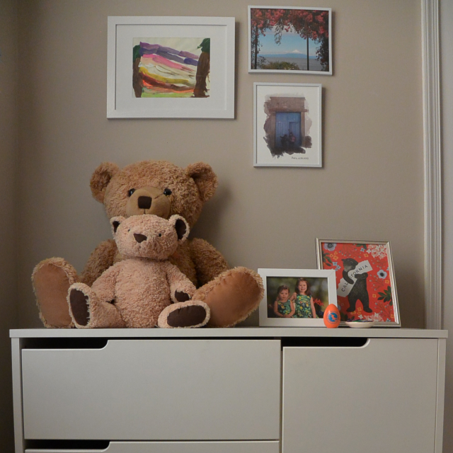 Do you still have a changing pad taking up most of (if not all) of the dresser’s surface area? Ditch it! The toddler years are for potty training and learning to dress independently, which is a lot easier and safer to do down on the floor. Now you can finally adorn the dresser with new photos, an oversized stuffie, and toddler trinkets. If a detachable changing tray came with your dresser, they are often sturdy and already compartmentalized for diapers and wipes, so here’s a hack—put it at the bottom of a standard closet. It’s a great way to organize and slide out shoes, toys, or that bin of clothes waiting to be grown into. You can even get really streamlined and try out a clothing capsule for kids, which encourages independence.