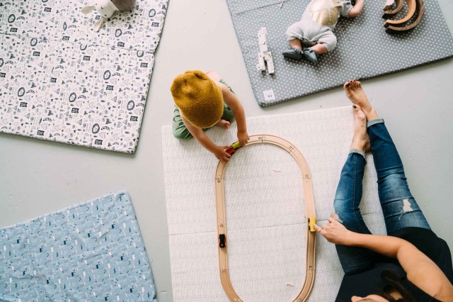 Floor time is still important for toddlers, so consider a chic mat you don’t have to hide when guests arrive. These Toki Mats add a stylish touch to any room all on their own, are made of 100% natural materials, and their cotton covers are machine washable (to get you well beyond the spit-up years). Cushioned, too, tots can practice summersaults and you can feel more comfortable down on the floor. And if you plan to have another baby (or already have one) and want a safe place for your toddler and newborn to play together, this is a great solution.