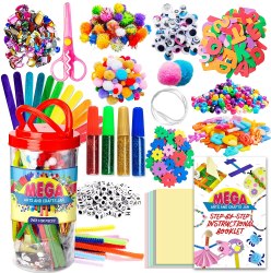 $13 BUY NOWThis 1000+ piece set is bound to keep the kids happy for a while. Choose from pipe cleaners, pompoms, sequins, googly eyes, foam letters, flowers, plastic beads, wooden sticks, paper scroll and more––all in a handy plastic bucket.