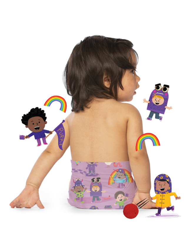 Now you can do more than just page through the book. Bell recently posted her own reading of The World Needs More Purple People on Instagram! Watch the clip on HelloBello’s Instagram page here. As if that’s not enough, you can also outfit your littlest The World Needs More Purple People fan in diapers with the purple-y book theme.
