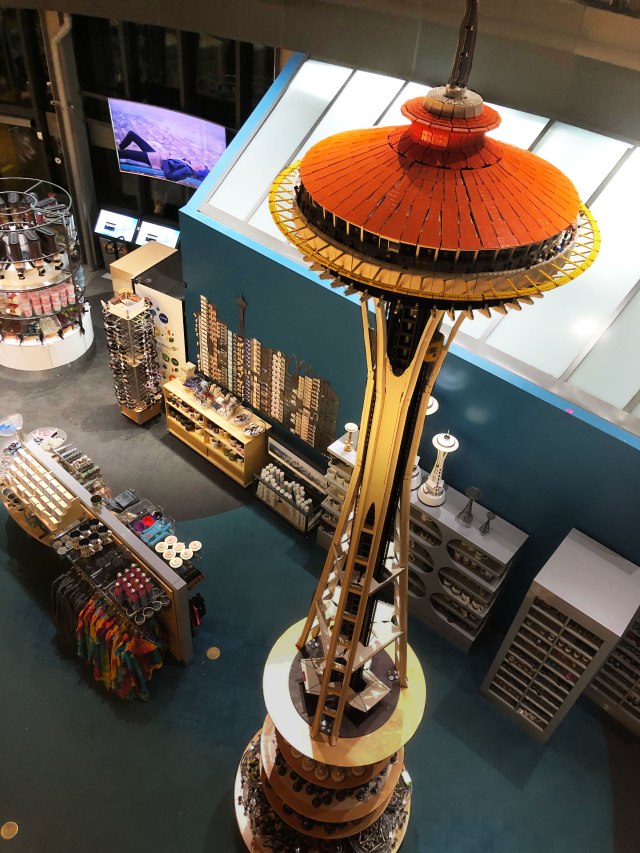 Standing at 14 feet tall and weighing 150 pounds the LEGO Space Needle now has a permanent home in the Space Needle’s gift shop called Spacebase. The model, which took 55,000 bricks to build, is meticulously crafted in the image of the real Space Needle as it appeared for the 1962 World’s Fair.