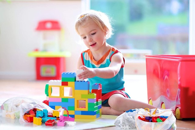 We love this stylish toy storage basket that turns into a play mat. Simply pour the bricks out onto the play mat and use the handles to scoop them right back up when it’s time to clean up.