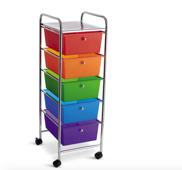 Sometimes your kids will want to build with LEGO in their rooms, sometimes they'll want to build in the living room, kitchen or wherever else strikes their fancy. An arts and craft storage cart will also work for their bricks, especially if you find bins to organize the pieces. This one from Michael's is great because you can choose white or color bins!