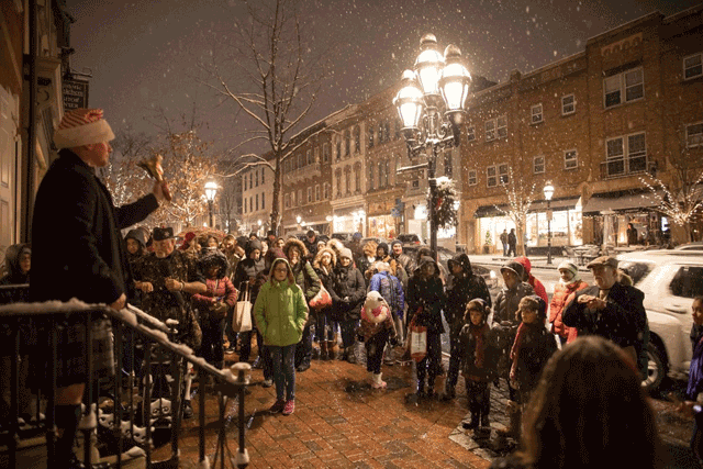 During this theatrical event, the town crier will ring a bell up and down Main Street to call visitors. A child from the crowd will be invited to come and knock three times at a local business where a surprise will be revealed.