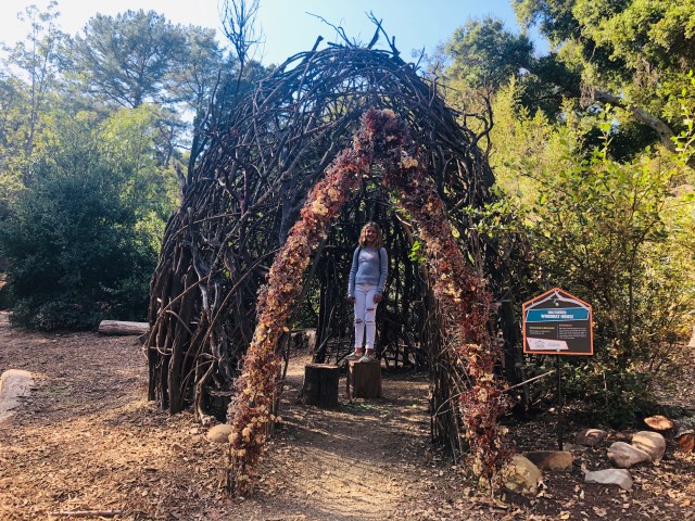 Consider The Santa Barbara Botanic Garden's temporary exhibit, Garden Casitas: Playhouses Designed with Nature in Mind (running now through Feb. 29, 2020) a must-see! Kids will love exploring six playhouses created by local designers that are constructed using plant-based materials. Shown above is the Big-eared Woodrat House. Each house has an informational plaque by it with fun facts such as: "big-eared woodrats (Neotoma macrotis) are nocturnal and forage for leaves, plants, and seeds during the night. If they come across anything shiny or cool-looking, they will carry it back to their nests for display." Kids will delight in all of the playhouses they can climb through and explore. It's an unbeatable way to spend an afternoon.
