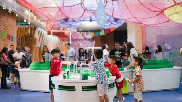 The Discovery Cube LA is a children’s museum that brings STEM education to life with a wide range of immersive and interactive science activities. With a mission to inspire and educate young minds, the museum features over 50 hands-on activities, including the LA Kings Hockey exhibit where you can pretend to be a hockey player and train like a pro, a wind exhibit where you can hop inside a wind simulator to see what’s happening to our climate, a grocery store where you can scan items, and a physics area where kids can play with various pulleys.