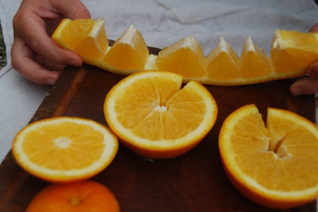 Apples are more likely to be eaten if they are cut up, and this rubber band trick will keep them from going brown. Or, use the Real Mom Nutrition suggestion of rubbing a combo of lemon juice and OJ or pineapple juice on the slices.