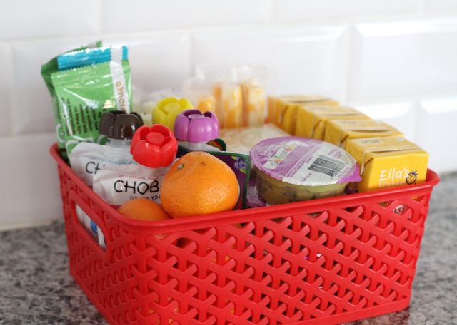 Plenty of moms, including Shannon Sargent at Clean Eats & Treats, swear by the idea of “snack stations” where kids can pick out what they want. Dedicate a space in the fridge or pantry using toy storage bins, and pack it with snacks or use this genius hack, which reuses a hanging shoe organizer with see-through pockets as a snack wall.