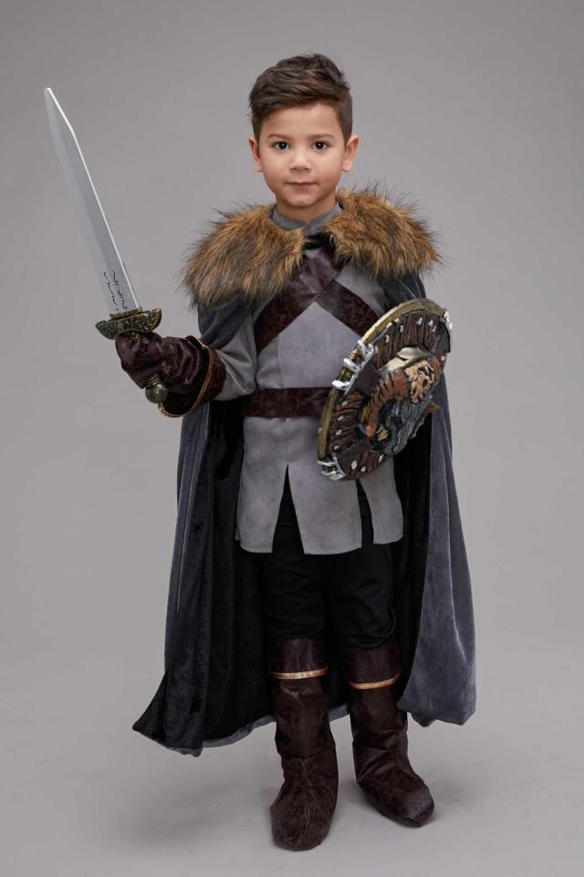 My lords and ladies! Game of Thrones or medieval-era lovers will swoon over this complex costume. It comes with velour cape with a wide faux fur color, tunic, pants and faux leather boot covers.