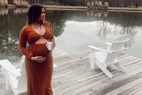 Her Grammy-day post showcases Morris’ belly bump—as she stands in front of a supremely scenic setting. Morris captioned her new IG photo, “Back at the farm. #babymoon.”