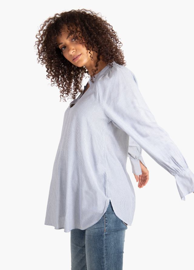 Universally flattering, the buttoned neckline fastens down to an empire-line seam where the fabric skims the bump for a floaty silhouette. This is a blouse you'll love for both weekday work calls and weekend brunch dates!