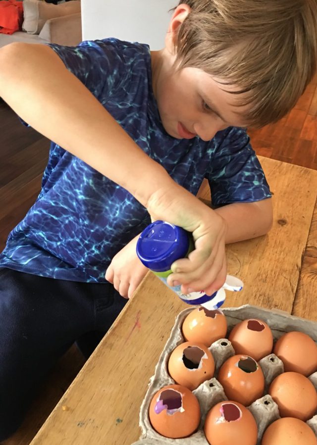 Drip a little paint into hollowed-out eggs and let your kids smash away with this fun project from Growing a Jeweled Rose. Note: To avoid making a stinky art project, be sure to rinse the eggs out before you pour in the paint!