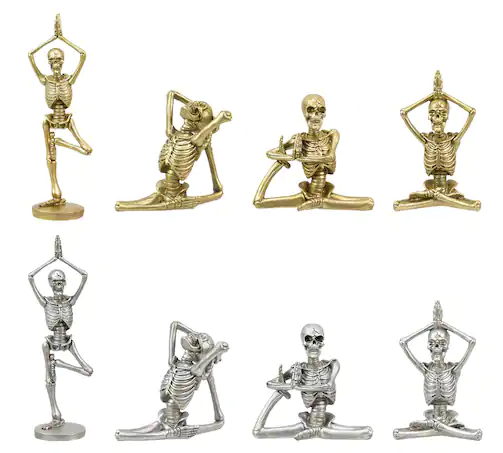 Amongst the shelves brimming with grinning jack o’lanterns and cackling witches at Michael’s, you’ll find the calmest bunch of skeletons you’ve ever met. Each little skeleton sits around six inches tall and features a different yoga pose including tree pose, lotus pose, one-legged king pigeon pose and more.