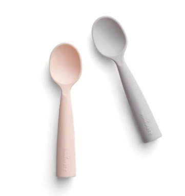 The spoons were sold in a set of two and in Meal Kit Configurations. The sets of two came in gray, aqua, peach, key lime (green), cotton candy (pink), and lavender colors. The “First Bites” kits came with a bowl, suction foot, lid and spoons. The “First Bites Travel Kit” spoons came in key lime, aqua, cotton candy, lavender, gray and peach and the “Sup and Snack” kit spoons came in peach and gray.