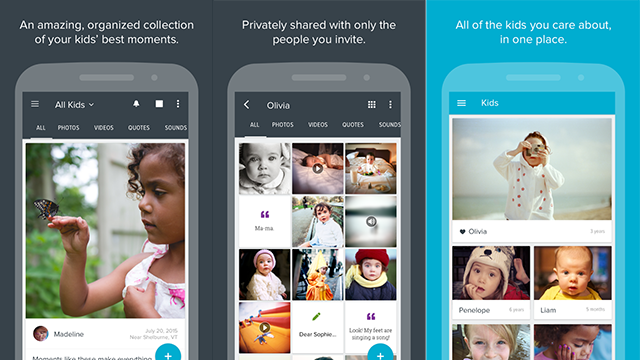 Unlike many social media sites that can be about over-sharing family photos, Notabli takes the opposite approach, allowing users to strictly limit what they share and with whom they are sharing. In addition to sharing photos and videos of your kids, you also can collaboratively save and share audio recordings, notes and quotes with each post. The app makes it simple to create a single collection of pics and vids of any kid’s special moments. There’s even a subscription option that lets users automatically print collections of kid photos in premium hardcover books ($39 per book, which includes 50 photos). Other notable perks include unlimited photo storage and an ad-free environment.