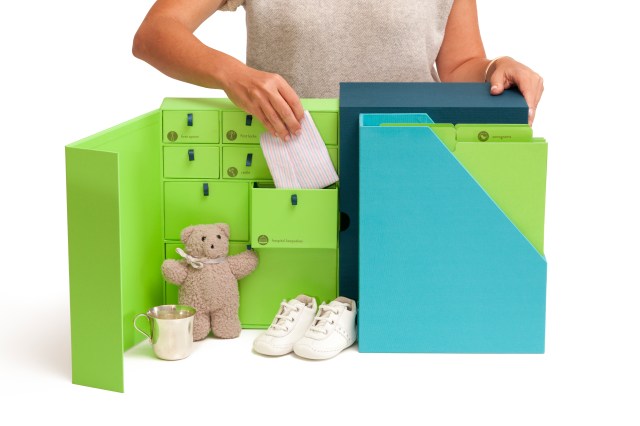 You love all the notes and stick-figure drawings, but it doesn’t take long for paper to take over your house. That’s why moms Karla “neatnick” the Losen and Jennifer organization queen”  McAllister-Nevins got together and invented The Keepsake Box by Savor, designed to help you keep treasures and cull the chaos. There are two versions: The Library: Baby Keepsake Box and The Library: School Years Keepsake Box. Each box includes a handcrafted, book cloth case; pre-categorized labels; 9 drawers for tiny things and 8 vertical files (baby version) or 16 vertical files (school years); a birthday survey for yearly highlights and more. It’s like scrapbooking without the scrapbooking. Everything is contained, sleek and easy to browse through so you can walk down memory lane anytime. As an added bonus, they look cute on the shelf. Stop shoving those things in a bin and start organizing your treasures! Prices start at $69.95.