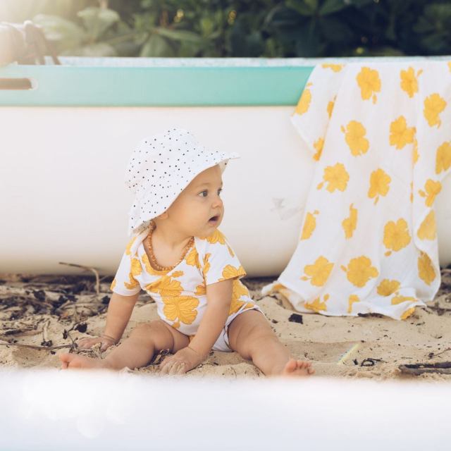Amber Thibaut grew up as the daughter of a Maui waterman, which connected her strongly to the island culture. Late one night while nursing her son, she realized the blanket she reached for held no special meaning or connection to Hawaii, which embodied arts, tradition and community. That night, Coco Moon was born. Now, Thibaut's brand specializes in buttery-soft baby goods that are all inspired by memories of a childhood in Hawaii. Parents can shop island-inspired quilts, security and throw blankets, swaddles and clothing with whimsical prints and the softest materials.