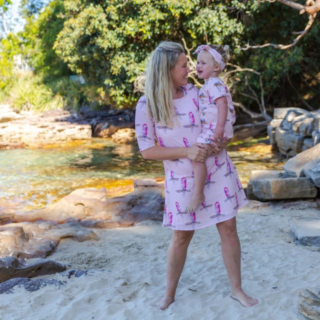 Busy mom of four Connie kicked off Cheeky Chickadee when her first daughter was little. The Australian brand is designed in Sydney and features hand-drawn animal prints on soft swimwear fabric in sizes newborn to eight. The family-run business was initially started as a way to create affordable clothes for kids that last and as a way to spend more time with her family. Five years later, Cheeky Chickadee not only features clothes for littles, but matching options for mom and dad, too!