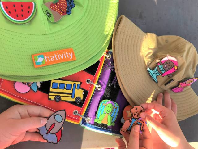 Dr. Shannon Davis PT, DPT is a mom to two girls from San Diego. When she found herself without enough hands to carry her kiddos hats plus entertainment when doing the family errands, she decided to combine the two, and Hativity was born! The patent-pending interactive headwear combines the must-have hat your littles need to protect them from sun, heat, and cold exposure and adds some fun. Choose from custom-designed Velcro patches that are interchangeable and include objects, characters and emojis. Parents can choose from summer or winter styles and patches in a variety of fabrics, too.