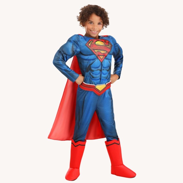 For the kid who insists they don’t need a jacket because they’re literally Superman. This cape-and-muscle combo guarantees faster candy collection, dramatic living room takeoffs, and at least three “up, up, and away” moments before bedtime (kryptonite = bedtime, by the way).