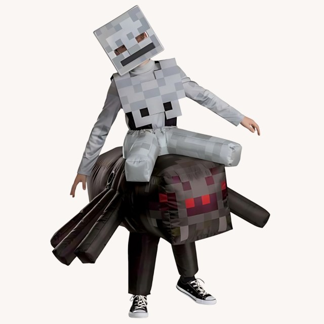 The inflatable spider jockey is…a lot. Picture your kid wobbling down the street like a Minecraft mob straight out of a fever dream—spider legs flailing, skeleton on top. Hilarious, slightly terrifying, and guaranteed to stop traffic.