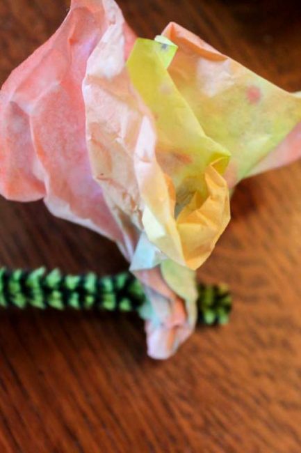 An ice-cube tray of watercolors, coffee filters and pipe cleaners are all you need to make beautiful colored coffee-filter flowers that will never wilt. The Hands On As We Grow blog has instructions on painting or dipping (depending on baby’s dexterity) the filters for a gorgeous Mother’s Day bouquet.