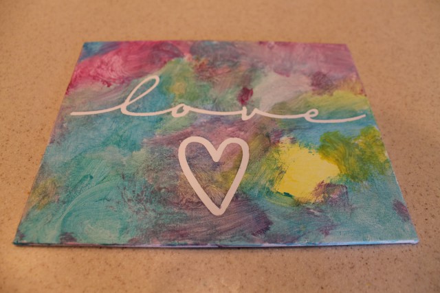 This incredibly simple project turns a sloppy mess into a piece of fine art. Grab a piece of canvas, a few jars of finger paint, and some shape stickers or die-cut vinyl lettering and let your child work their artistic magic. Your little one will get to play and learn about texture, color mixing and creativity, while the letters elevate their design into something pretty special. See more at The Desperate Craftwives.