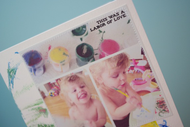 This clever idea for making Mother's Day cards combines hand-scribbled art with photos of the artist in action: Take photos of your child while they're creating their card masterpiece and attach the photos to the front of the card. If your child isn't ready to manage a paintbrush or marker, give them finger paints. You'll find instructions for the card (and a DIY envelope to put it in) at The Mombot.