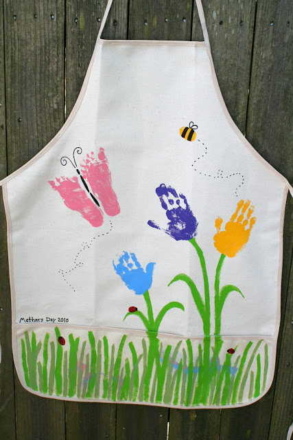 Craft a garden of love with baby’s hand and footprints on an adorable handprint apron from the Little Page Turners blog. Add in a yellow thumb and a few red fingertips for the bee and ladybugs. It's the perfect gift for grandmas who like to cook with their grandkids.
