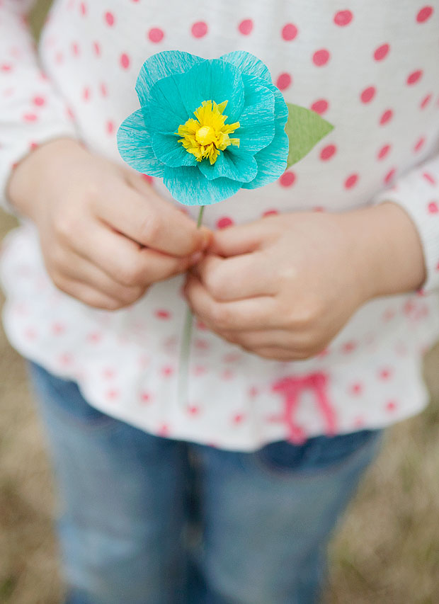Break out the crepe papers to make a bouquet of colorful flowers like this one from The Art of Simple. You can use pipe cleaners instead of floral wire to make it easy for the kids to take over. Click here to see the step-by-step instructions.