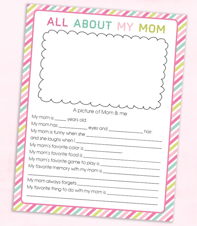 If you don’t have time to make an elaborate craft, this cute questionnaire from Lil’ Luna will fit the bill. Your little one can fill out facts about Mom, and then they can draw and color a one-of-a-kind picture of her. To get the printable, click here.