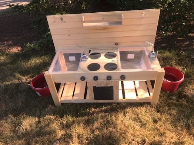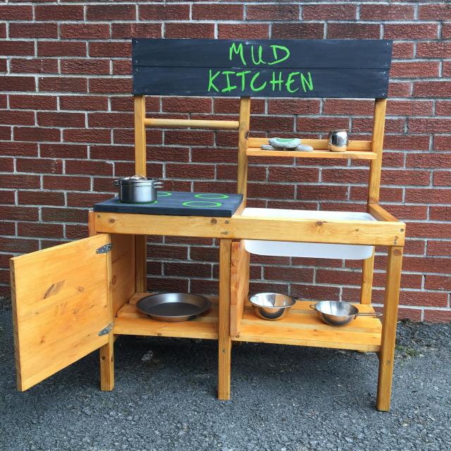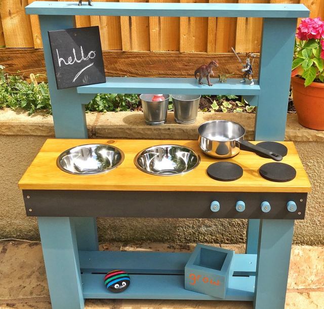 This well-made mud kitchen comes in three different sizes and four different colors. The smallest size is super affordable!